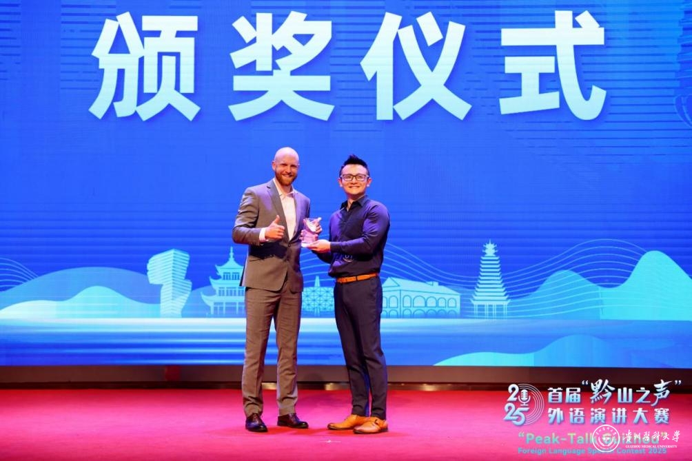 4月11日,首届“黔山之声”外语演讲大赛决赛在贵州省图书馆北馆举行。beat365欧美同学会(留学人员联谊会)会员、外国语学院教师赵毅荣获大赛二等奖及最佳人气奖。