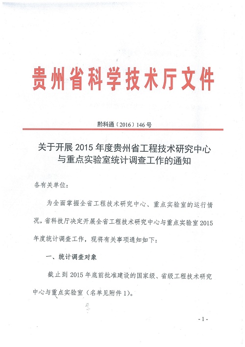 现将科技厅《关于开展2015年度贵州省工程技术研究中心与重点实验室统计调查工作的通知》转发如下。请相关单位按照通知要求完成此次统计调查工作。