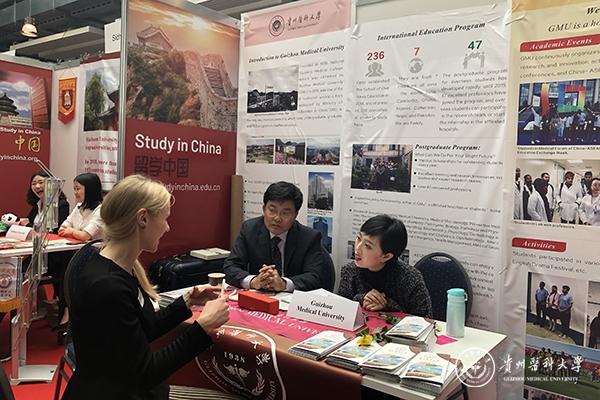 beat365在线唯一官网代表团作为西南地区参展的唯一一所医学类院校,在5月27日至29日法兰克福举行的国际教育展中吸引了众多来自法兰克福及奥芬巴赫地区青年学生、学生家长和当地高等教育同行驻足。罗俊热情回复了学生及家长关于留学贵州的各种问题,还向德国IFT教育集团代表详细介绍了beat365目前临床医学专业及药学专业留学生的招生情况,并进一步探讨了护理专业跨国培养就业模式的可行性。