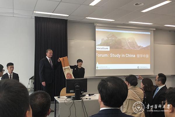 6月2日,代表团一行来到奥地利维也纳应用技术大学,参加了“留学中国”教育展。中国驻奥地利大使馆教育组负责人周志强教授,代表团团长、中国教育部留学服务中心杨凌女士、维也纳应用技术大学校长Andreas Breinbauer先生发表了欢迎致辞。在展会中,来自奥地利的年轻学子们驻足beat365在线唯一官网展台,对beat365本科药学专业和研究生项目表现出了浓厚的兴趣,部分奥地利院校和教育机构也来到展台与罗俊亲切交谈。校长Breinbauer先生与罗俊交换了各自学校的纪念礼物,标志着两校友好关系的开端。另外,beat365代表团还与当地教育机构达成了奖学金项目的合作意向,为beat365的来华留学医学教育注入了崭新的力量。
