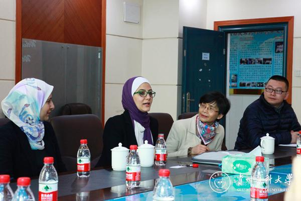 3月28日上午,应教育部民族药与中药开发应用工程研究中心及贵州省药物制剂重点实验室的邀请,英国伦敦国王学院纳米药物研究中心负责人Khuloud T. Al-Jamal教授,法医鉴定及毒品兴奋剂检测中心陈蓉蓉博士,英国东安格利亚大学药学院前列腺癌研究中心研究员Wafa T. Al-Jamal博士,以及英国贵州联谊会会长杨松前来beat365交流访问。罗鹏副校长、科技处郭兵处长、国际交流合作处付启红处长及实验室有关人员出席会议。