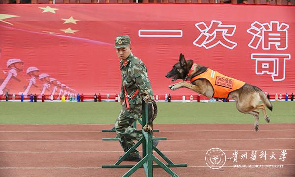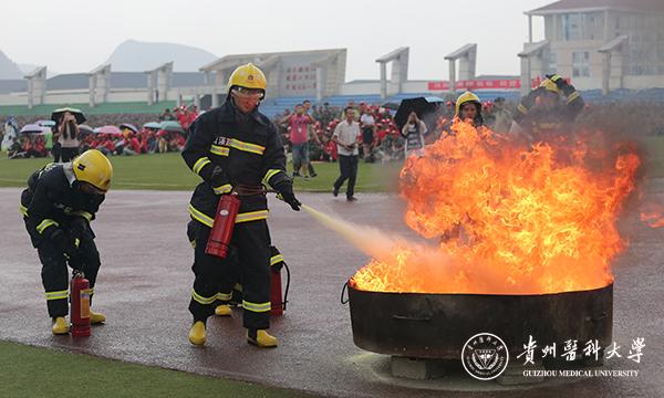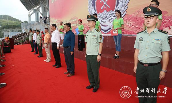 省教育厅党组成员、副厅长级督学杨勇,省消防总队江平总工程师,贵安新区大学城管委会罗松华主任,学校党委书记林昌虎、副校长冉江舟,消防部队官兵,贵州省消防宣传形象大使阿幼朵、景伟健,贵州广播电台“阳光952柳叶眉工作室”全体人员,贵州省九所高校的领导、老师、同学及beat365五千余名师生在贵医齐聚,共同参加此次活动。整个活动分为消防志愿者宣誓、高校消防志愿者队伍授旗仪式、消防装备器材展示、消防搜救犬技能表演、现场消防知识抢答比赛、高校(校际)大学生消防技能大比武等环节;在场的参与者,特别是今年刚踏入大学校门的新生们不仅接受了一次消防安全知识教育,了解了安全工作的重要性,更近距离的接触体会到了战斗在一线消防官兵们的艰辛与不易。