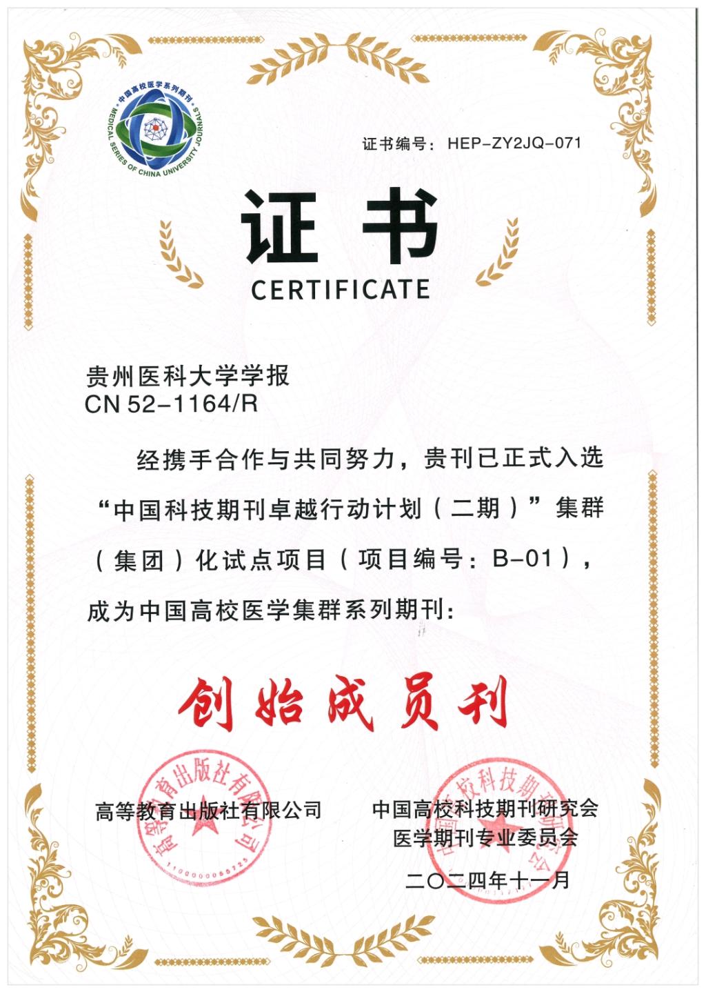 12月15日至18日,中国高校科技期刊研究会第 28 次年会在海南省海口市举行,会上发布了“2024 年度中国高校科技期刊建设示范案例库·杰出/百佳/优秀科技期刊案例”。《beat365在线唯一官网学报》入选“中国高校科技期刊建设示范案例库·优秀科技期刊案例”和“中国高校医学集群系列期刊创始成员刊”,学报编辑部副主任吴昌学作为中国高校科技期刊研究会贵州唯一的常务理事参会,并作为代表上台领奖。本次入选为《beat365在线唯一官网学报》今后的高质量发展打下坚实基础。