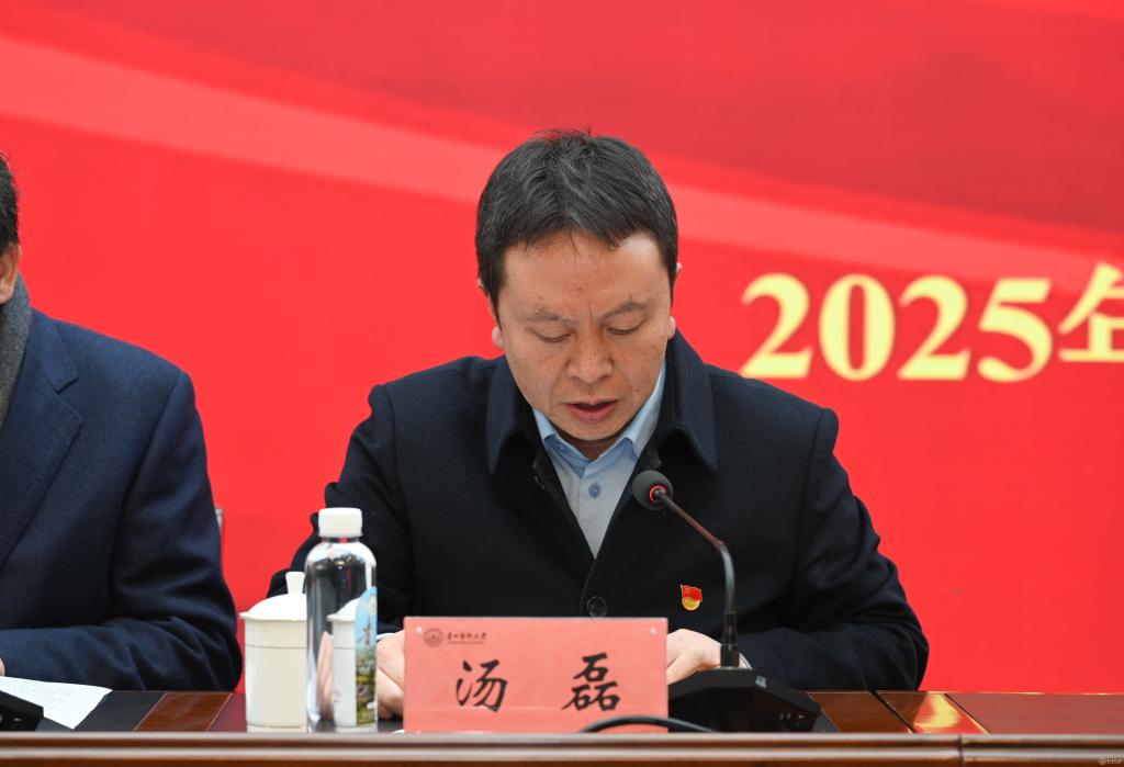 会议指出,今年是“十四五”规划的收官之年,也是为“十五五”规划起步打下基础的关键之年,纵深推进全面从严治党意义重大。他强调,要坚持加强党对学校工作的全面领导,持续在落实管党治党责任上下功夫,切实增强落实全面从严治党的政治自觉。要持续净化党内政治生态,着力构建以案促改的长效机制,深化以案促改,强化警示震慑,切实筑牢广大党员干部廉洁自律防线。要强化监督执纪问责,健全责任体系,规范运用第一种形态,把从严管理监督和鼓励担当作为高度统一起来,抓早抓小、防微杜渐,最大限度防止党员出问题和调动党员干事创业的积极性。要坚持不懈抓好作风建设和党风廉政建设,持续深化不敢腐、不能腐、不想腐一体推进,驰而不息纠“四风”树新风,营造风清气正的校园政治生态,为推动学校各项事业高质量发展提供坚强保障。