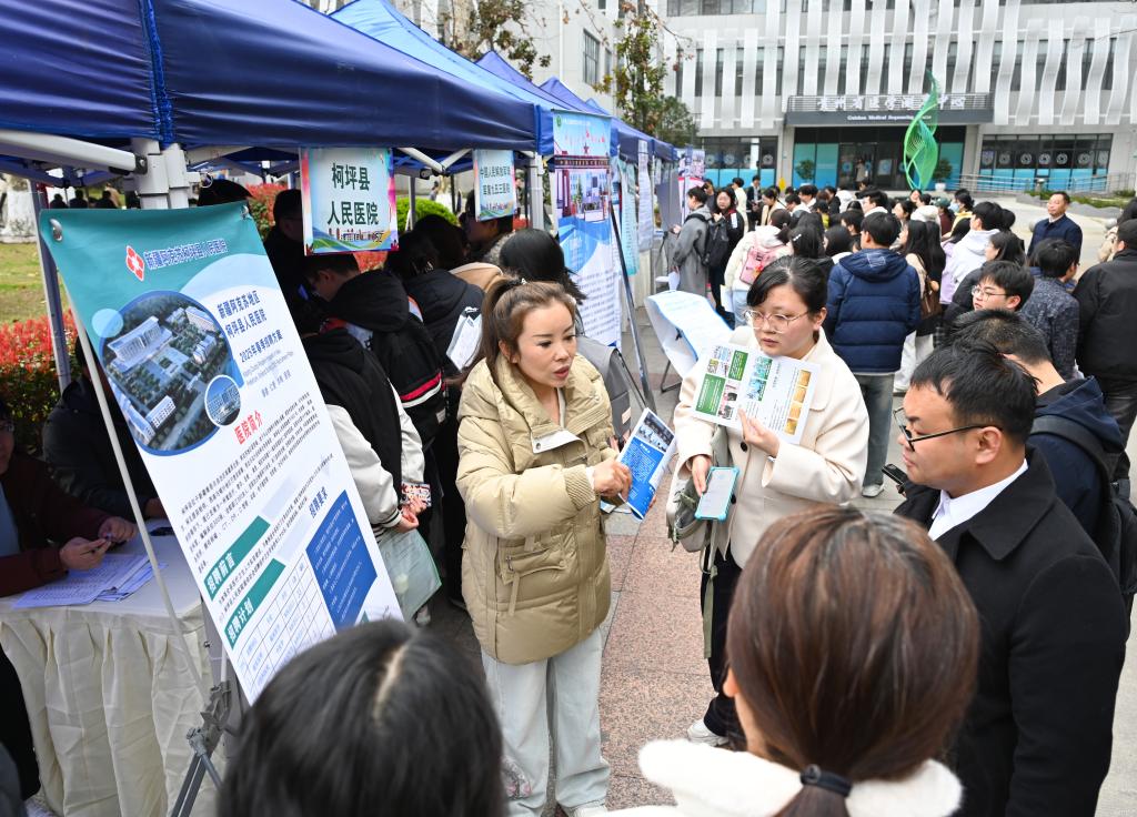 招聘会现场氛围高涨,热闹非凡。来自省内外的230 家用人单位踊跃参与,累计提供岗位多达 6900 余个。岗位覆盖医学、药学、护理、公共卫生等多个专业领域,全方位满足不同专业毕业生的求职诉求。各用人单位通过精心布置展位展示企业形象,详细介绍岗位要求,耐心解答学生疑问,以积极姿态广纳贤才。毕业生们手持精心制作的简历,满怀期待地穿梭于各个展位之间,主动与用人单位深入沟通交流,全面了解就业信息,展现出强烈的求职热情与积极的求职态度。与此同时,相关部门积极开展应征入伍、西部计划等政策宣传,为毕业生们提供更多元的职业发展路径。