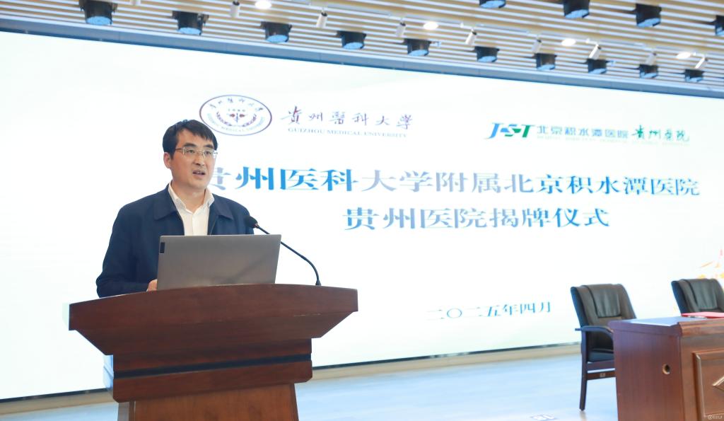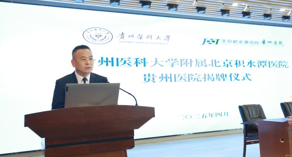 刘勇代表积水潭医院贵州医院致辞。他表示,医院将以此次签约揭牌为起点,与beat365在线唯一官网并肩同行,借助学校的优势资源,聚焦医教协同机制,在人才培养体系构建、教学基地标准化建设和科研项目申报等领域深化合作,共同肩负医学人才培养的时代重任,为实现医院高质量发展而不懈努力。
