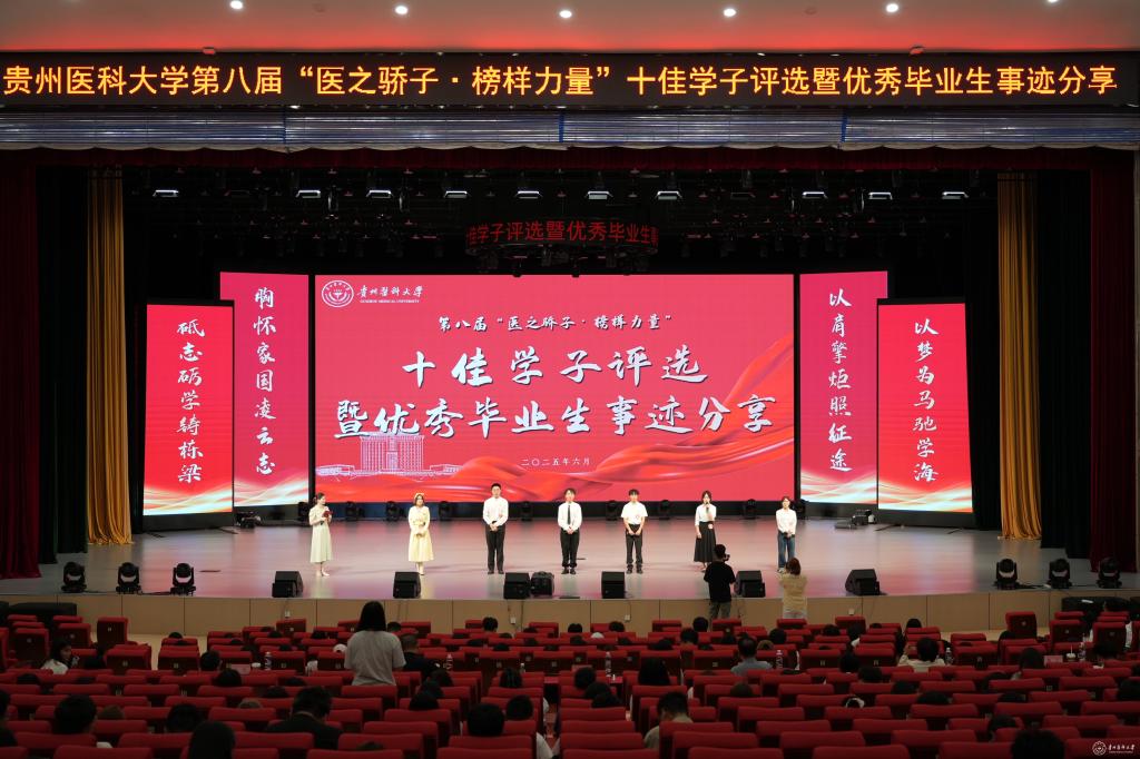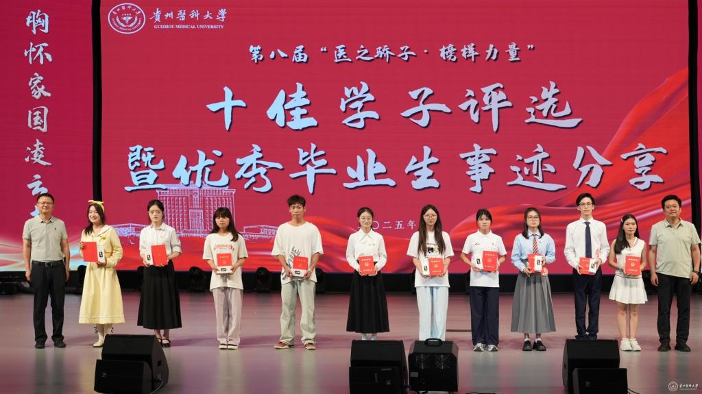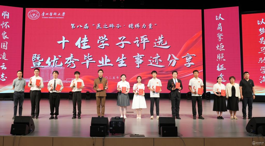 本次活动由党委学生工作部、党委研究生工作部联合主办,历经八年,累计表彰数百名德才兼备的优秀学子,在校园内形成示范引领、奋勇争先的良好氛围,以榜样力量激励青年学子传承“诚於己、忠于群、敬往思来”的校训精神。下一步,学校将对本届十佳大学生的先进事迹进行广泛宣传,以榜样故事点燃逐梦引擎,以铸魂育人筑牢思想根基,激励贵医学子志存高远、脚踏实地,以昂扬的姿态践行“请党放心,强国有我”的青春誓言,奋力书写为中国式现代化挺膺担当的青春篇章。