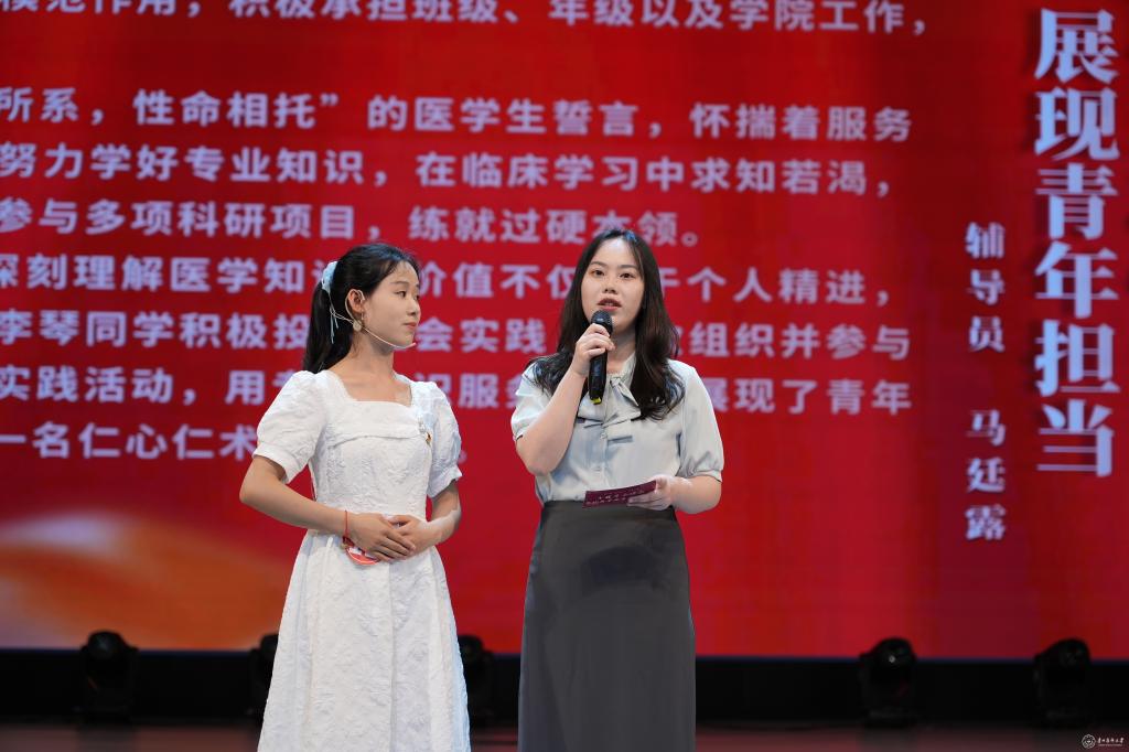 于浩致辞。他指出,“医之骄子·榜样力量”十佳学子评选是beat365朋辈榜样育人的重要载体,持续激励着一代代贵医学子奋勇向前,在追求卓越的道路上笃行不怠。他勉励全体同学以榜样为灯,在贵医这片育人沃土上汲养拔节,茁壮成长。