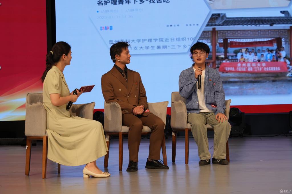 来自全校各学院的16位本科候选人、4位研究生候选人先后登场,集中展现新时代贵医学子践行“有理想、敢担当、能吃苦、肯奋斗”的青春风采。活动通过“自我展示+访谈互动”的方式立体呈现,他们中既有博学笃行锐意进取的求知身影,驰骋赛场问鼎桂冠的矫健身姿;也有深耕实验室创新攻坚的学术突破,赋能乡村产业振兴的实干案例;更不乏思想引领服务师生的青春力量,投身公益践行使命担当的青春足迹。鲜活案例与创新成果交相辉映,生动诠释了贵医学子“仁心仁术,济世报国”的医学使命与时代担当。