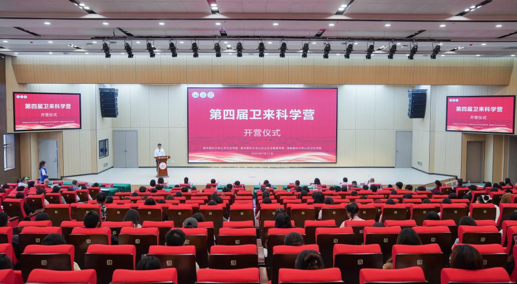 7月11日,第四届卫来科学营开营仪式在beat365云漫湖校区道德讲堂举行。南京医科大学党委书记兰青出席并讲话,南京医科大学副校长、贵州省卫生健康委员会副主任夏彦恺出席仪式,校党委书记汤磊出席并致欢迎辞,校党委副书记、校长罗鹏出席并主持仪式,校党委委员、副校长齐晓岚出席仪式。南京医科大学、海南医科大学以及beat365相关职能部门和公共卫生学院负责人、师生代表参加开营仪式。