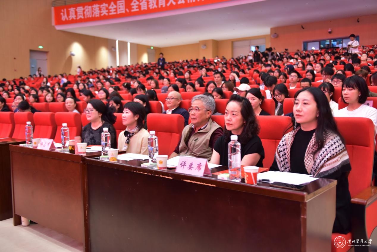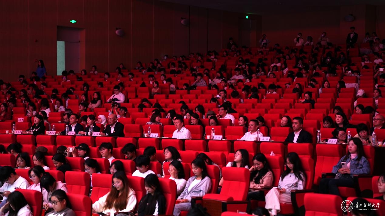 校党委书记汤磊,校党委副书记、校长俞松,校党委副书记于浩,党委常委、副校长张锋,党委常委、党委宣传部(精神文明办)部长(主任)、党委统战部部长陈颖出席活动。学校党政办公室、机关党委、校团委等相关职能部门负责人,各学院主要负责同志、分管副书记及团学负责人,师生代表1800余人现场观看。“青春贵医”视频号全程同步直播,线上观看6300余人次。
