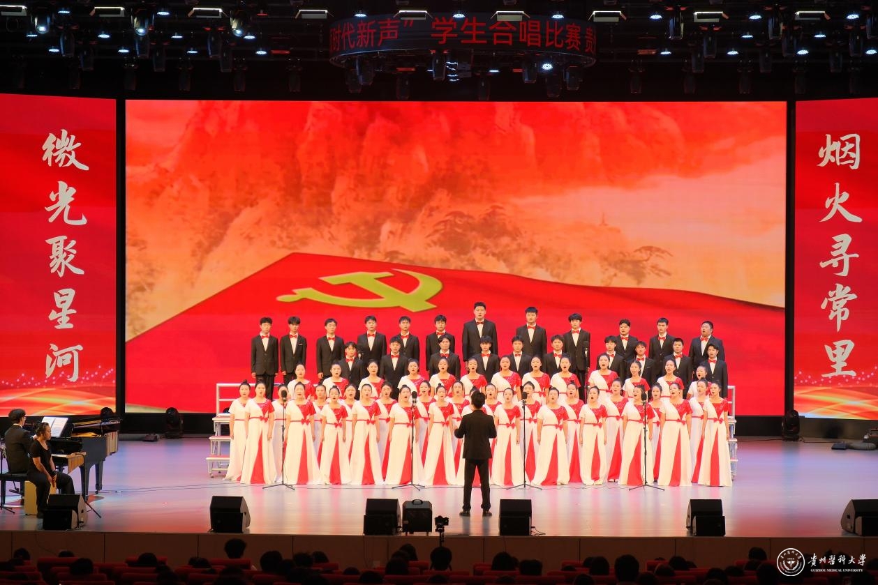 比赛现场流光溢彩,青春飞扬。各参赛队伍紧紧围绕爱国和青春主题,以歌叙史、以声言志,倾情演绎了《在太行山上》《保卫黄河》《没有共产党就没有新中国》等荡气回肠的红色经典,以及《如愿》《星辰大海》《追梦赤子心》等朝气蓬勃的青春乐章。经过一个多月的精心准备,各学院在传统合唱中创新融入深情朗诵、情景表演、舞蹈演绎、乐器伴奏等多元艺术形式,让经典旋律焕发时代新声,让青春之歌激荡奋进力量。30余首承载历史记忆与时代梦想的歌曲轮番上演,或激昂澎湃,或深情婉转,充分展现了贵医青年自信自强、团结奋斗、朝气蓬勃的精神风貌。整场演出高潮迭起,掌声如潮,热烈的气氛感染着每一位在场师生。