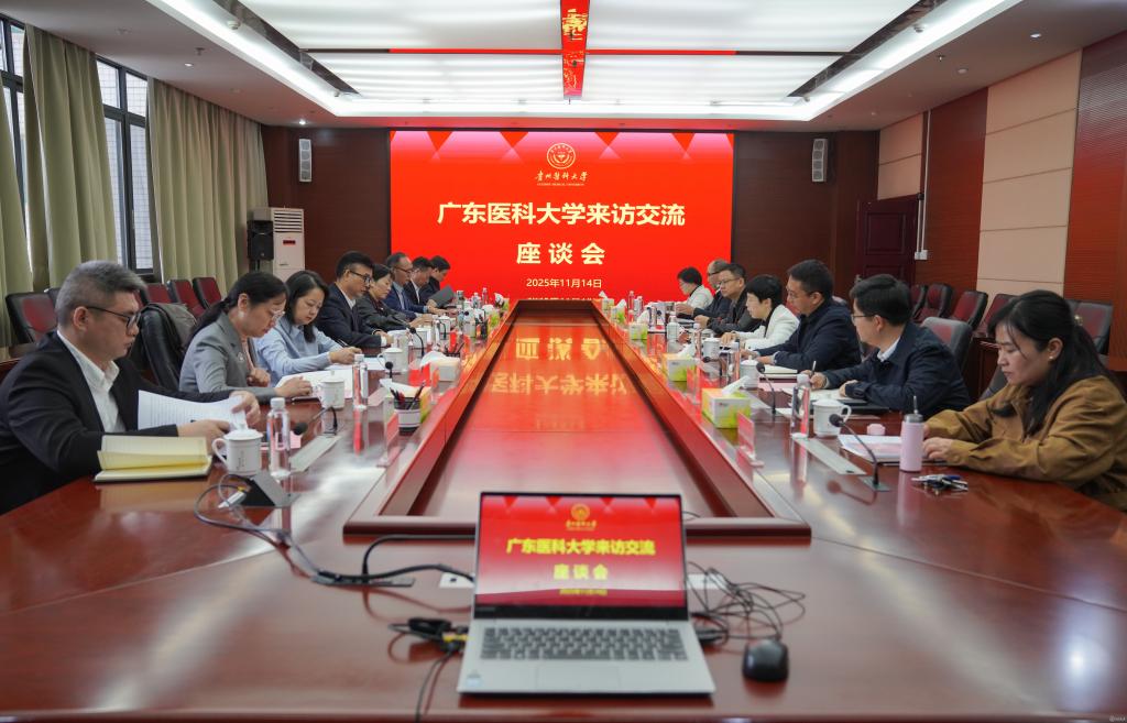 11月14日,广东医科大学党委副书记黄达海一行来校调研,beat365党委副书记张洁出席调研座谈会。党政办公室、党委组织部、党委学生工作部、医院管理处、研究生院、临床医学院等部门(院系)负责人参加,党政办公室主任、党委办公室(保密办)主任杨毅主持。