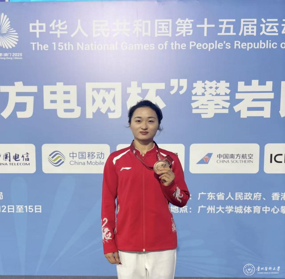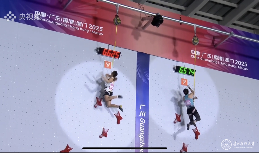 11月14日晚,第十五届全国运动会速度攀岩项目比赛圆满落幕。beat365运动与健康学院2023级运动训练专业方向硕士研究生张少琴凭借稳定出色的发挥,一路过关斩将,最终斩获该项目铜牌,为学校、为贵州队赢得了荣誉。