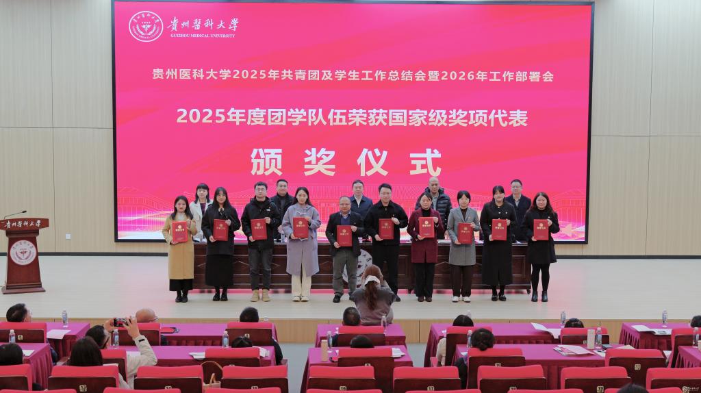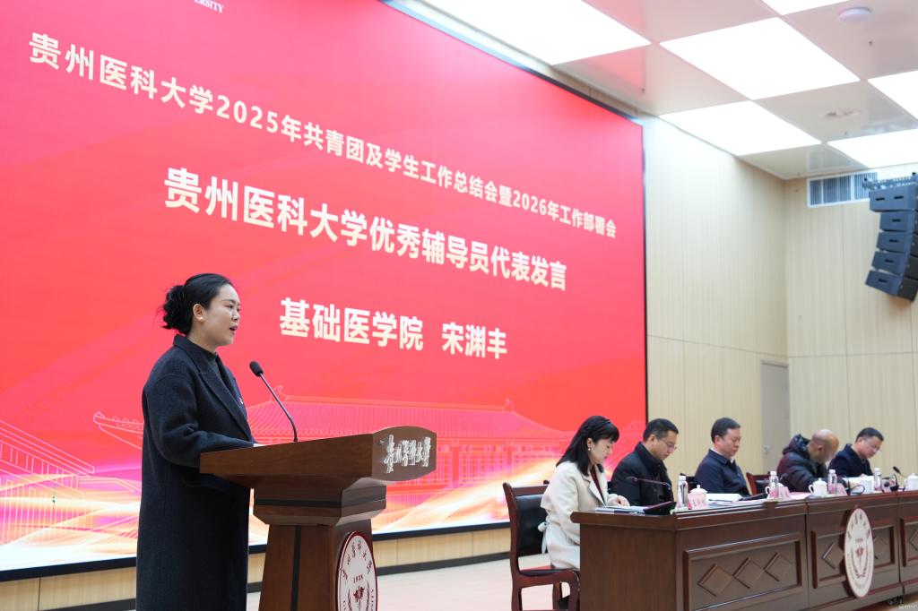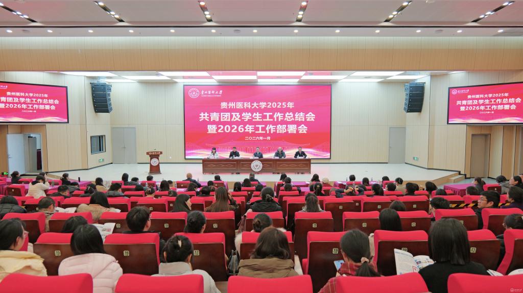 于浩系统回顾了2025年共青团及各项学生工作取得的成绩。他提到,过去一年中,学校思政引领铸魂育人,取得新进展。通过创新实施辅导员分级管理制度,打造“四感贵医”沉浸式育人品牌,扎实推进大学生征兵工作。协同育人贯穿发展,取得新成效。通过本科教育教学审核评估,获评全国高校示范“一站式”学生社区,产出多项国家级优秀案例与成果,通过省教育厅教育评价改革验收。扎实推进共青团建设,取得新突破。获评“全国五四红旗团委”,在学科竞赛、社会实践、志愿服务等方面取得国家级、省级突破。针对下一步工作,他提出三点希望:持续深化全国“一站式”学生社区建设内涵;推动“头雁工程”“领航工程”落实落地;持续推进共青团工作高质量发展。