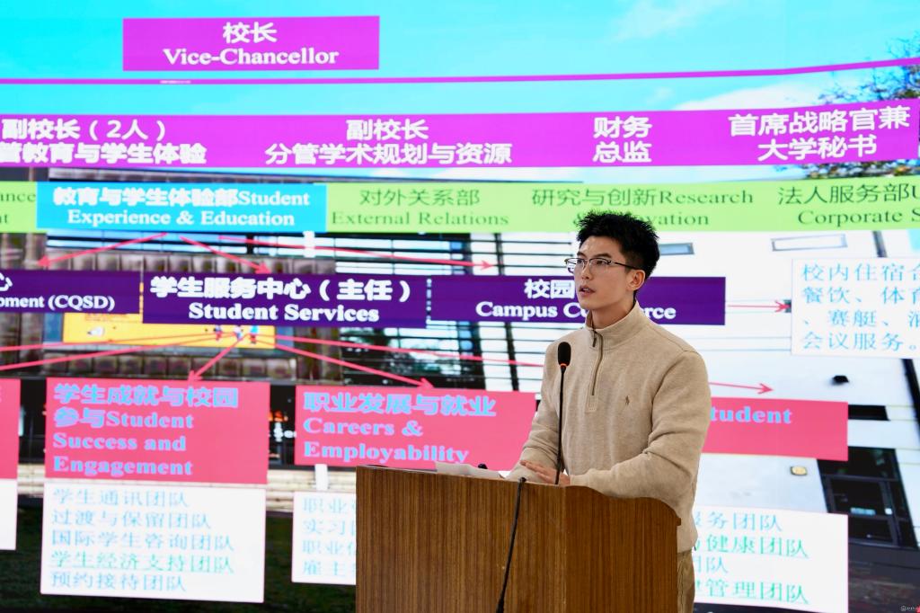 会后,全体人员在弘远楼路演厅开展“经验共叙”专题分享。药学院党委副书记包欢欢以《以社区为炉,文化为引,五育为方——药学院“一站式”学生社区建设实践与探索》为题交流学生社区建设心得。口腔医学院辅导员刘逸洲通过《大英奇妙季》分享海外访学见闻与思考。运动与健康学院辅导员周小援以《从“困局”到“破局”:一名辅导员的成长与求索》为题,生动讲述了个人职业成长历程。现场交流深入,氛围热烈。