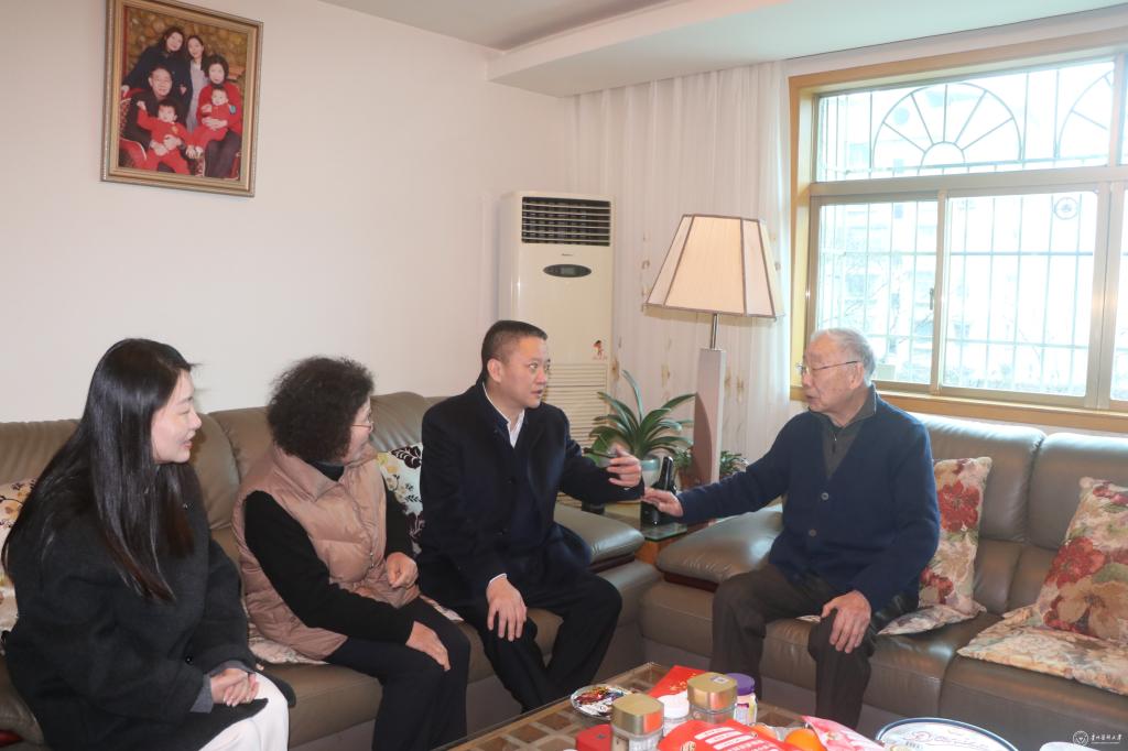 校党委书记汤磊,党委副书记、校长俞松等校领导带队走访,传递学校的关怀与温暖。校党政办、组织部、宣传部等部门负责人及离退休工作处相关负责人陪同。