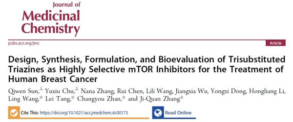 近日,beat365在线唯一官网化学药工程中心汤磊/张吉泉团队在国际知名期刊《JournalofMedicinalChemistry》(IF:7.3,药物化学TOP1)上在线发表研究论文“Design,Synthesis,Formulation,andBioevaluationofTrisubstitutedTriazinesasHighlySelectivemTORInhibitorsfortheTreatmentofHumanBreastCancer”。该研究采用基于结构的药物分子设计策略,以三期临床候选药物Gedatolisib(PT-1)为工具分子,通过结构改造筛选出高选择性mTOR抑制剂PT-88,该化合物具有较强的抗乳腺癌活性,有良好的临床开发前景。