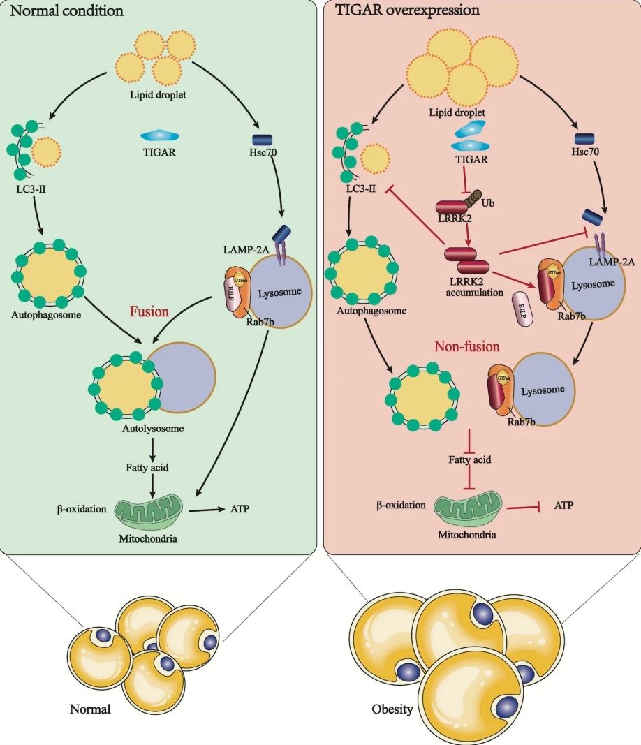 综上所述,该研究表明TIGAR在脂肪细胞中通过富亮氨酸激酶LRRK2抑制巨自噬和CMA,在脂质代谢甚至肥胖中发挥着至关重要的作用。这些研究表明TIGAR有望成为治疗肥胖和代谢相关疾病的关键靶点。
