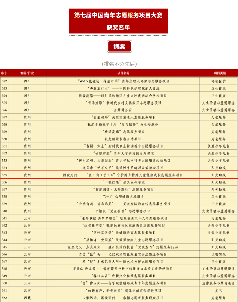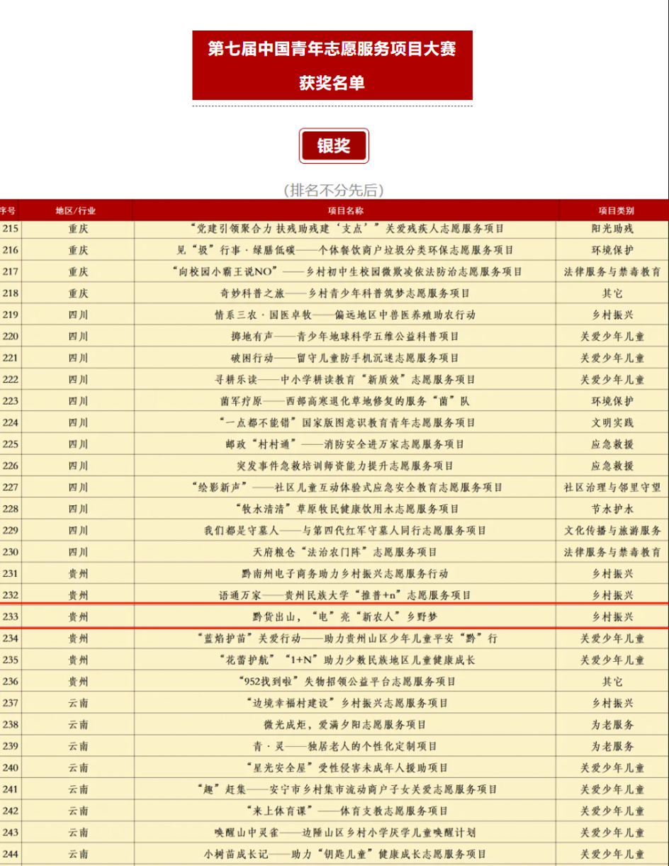 由共青团中央、中央社会工作部、民政部、水利部、文化和旅游部、国家卫生健康委、中国残联联合中共广东省委、广东省人民政府共同举办的第七届中国青年志愿服务项目大赛全国赛终评于12月1日圆满落幕。beat365在线唯一官网“黔货出山,‘电’亮新农人乡野梦”志愿服务项目获得国赛银奖,“因爱儿行—‘医+育+艺+E’守护黔乡特殊儿童健康成长”志愿服务项目获得国赛铜奖,实现志愿服务项目成绩新突破。