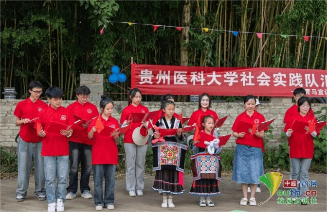 在黔东南三穗县八弓镇界牌村、黔西南望谟县新屯村、安顺市平坝区马场镇场边村等地,实践队与当地群众共同开展了文艺+宣讲、国旗下思政课、爱国主义教育汇演等宣讲实践活动。在三穗县景区,宣讲队员身着民族服饰自编自导拍摄宣传推介片,获得三穗县和美城乡网络宣传活动二等奖。两年来,宣讲队开展的系列宣讲实践活动也受到了中国青年报、中青校园、天眼新闻等各级新闻媒体宣传报道。