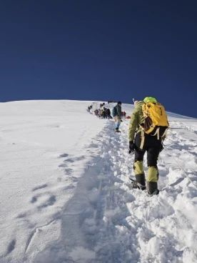 三人于5月3日凌晨四点,从西藏羊八井高山训练基地出发冲顶,面对前夜刚下过的大雪、陡峭的冰壁,三人克服艰难险阻,凭着勇于拼搏的意志和永不放弃的精神于北京时间10:55成功登顶洛堆峰(6010米)。