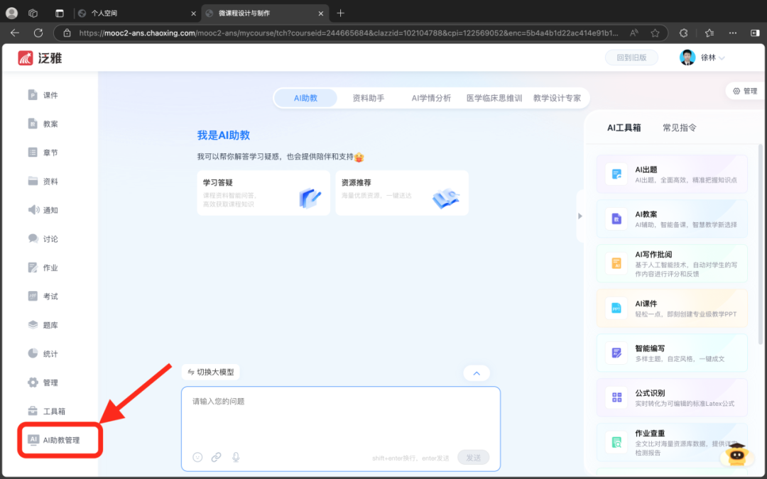 “贵医云”个人教学空间。