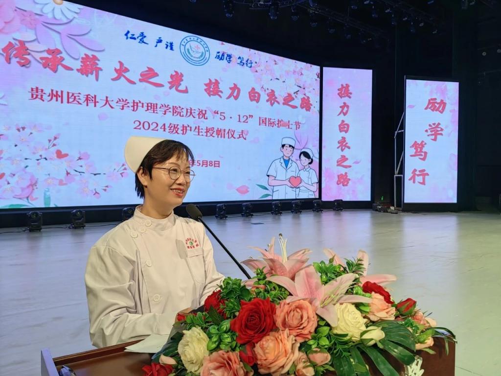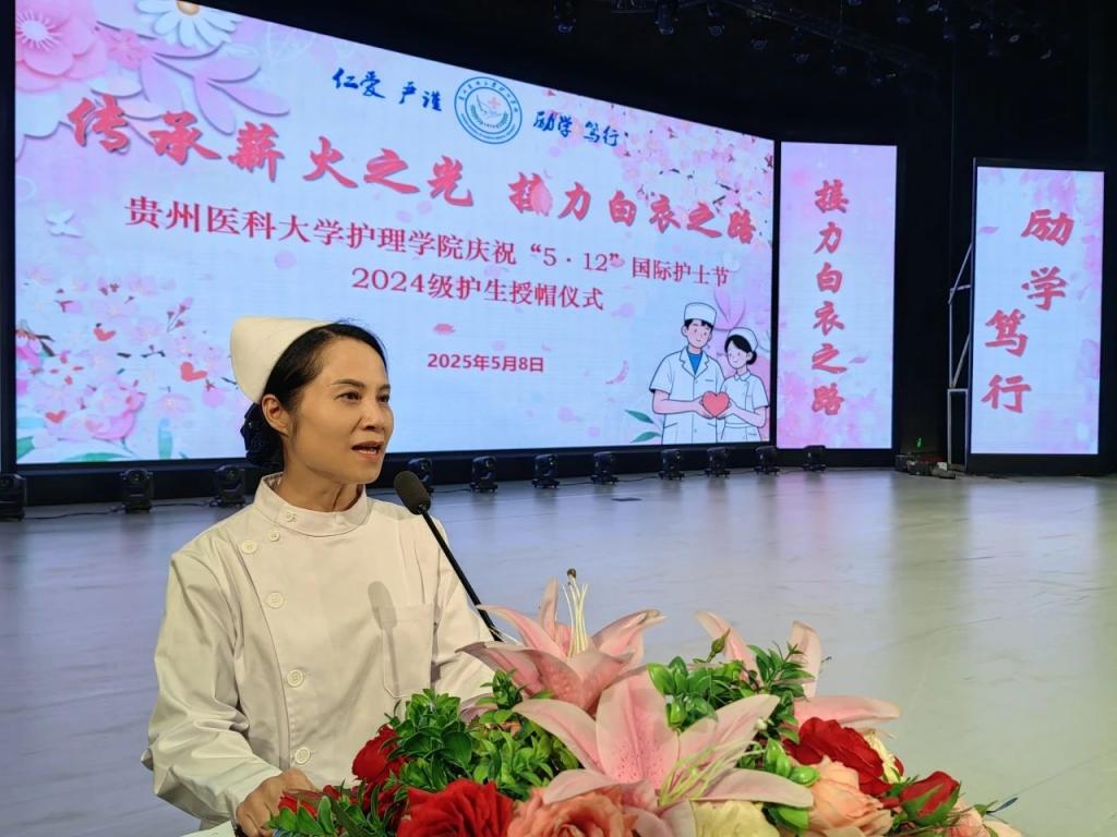 授帽仪式不仅代表着护理职业精神的传承,更承载着对生命敬畏、服务奉献的承诺,代表着从业者将秉持仁爱之心践行救死扶伤的使命。未来,学院将继续加强护理人才队伍和专业建设,培养兼具精湛技能与人文情怀的新时代护理人才,为建设健康贵州、健康中国贡献力量。