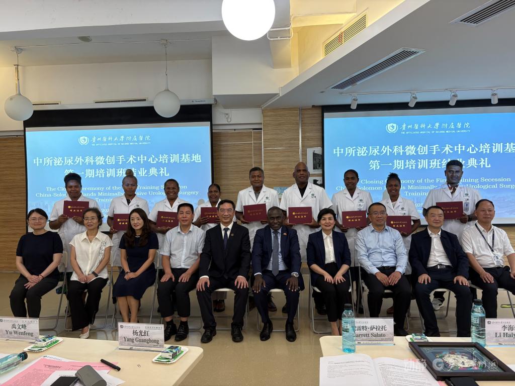 本次结业典礼旨在祝贺来自所罗门群岛国家转诊医院的9名医务人员顺利完成为期三个月的专业培训。培训涵盖泌尿外科微创技术、肾脏内科、急诊医学、输血医学等内容,是中所两国在卫生健康领域深化合作的重要体现。