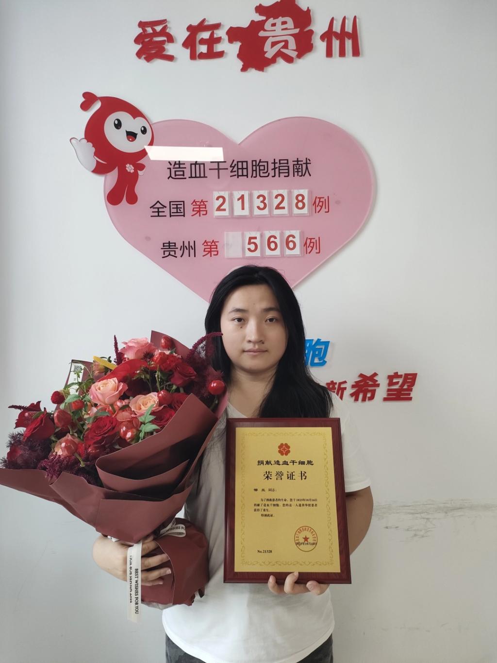 邹兰获得捐献造血干细胞荣誉证书。