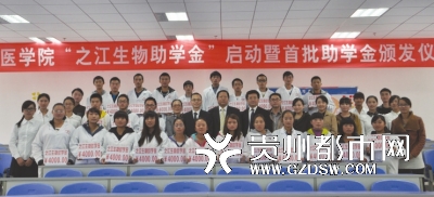 近日,贵阳医学院基础医学院在新校区举行“之江生物助学金”启动暨首批助学金颁发仪式。上海之江生物科技股份有限公司每年出资10万元用于资助该院品学兼优的贫困大学生。现场,25名品学兼优的贫困大学生,每人获得了4000元助学金,基础医学院党委书记徐国强教授与上海之江生物科技股份有限公司董事邵俊杰先生签订《基础医学院“之江生物助学金”协议书》。