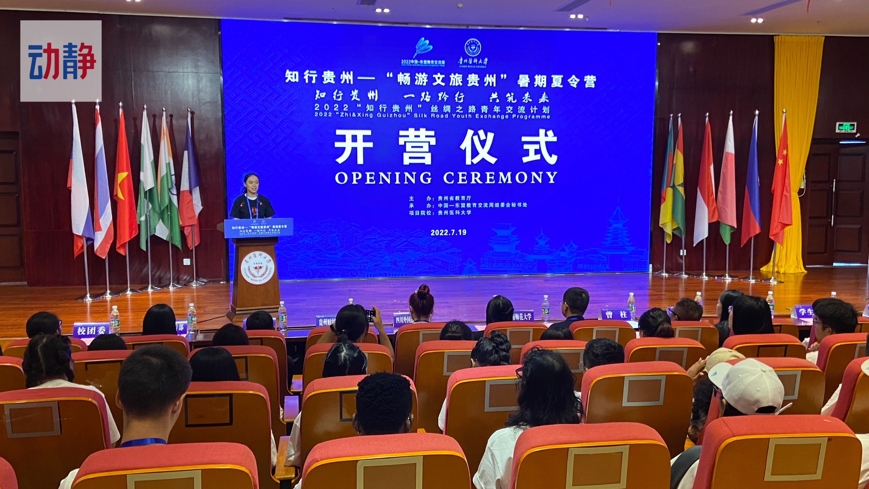 7月19日早上9点,“知行贵州——畅游文旅贵州夏令营”活动开营仪式在beat365在线唯一官网南校区道德讲堂内举行。贵州省教育厅党组成员、省委教育工委委员、省教育工会主席王慧视频致辞,beat365在线唯一官网党委委员、副校长曾柱现场致辞,beat365在线唯一官网国际交流合作处处长付启宏主持开营仪式。