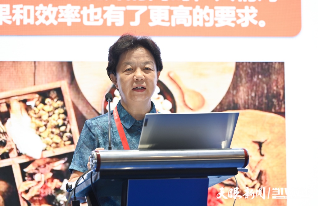 论坛首场重磅学术报告由朱蓓薇院士开讲,她以《传承食药精粹,创新发展中国食品营养健康产业》为题,从发展中国食品营养健康产业意义重大;多元并存,共创我国食品营养健康产业新蓝海;传承食药精粹,创新发展中国食品营养健康产业等三方面作了论坛主旨报告。她指出,当前,我国的大健康产业蓬勃发展,在养生意识不断提升的同时,人们对于养生效果和效率有了更高的要求。这为当前和今后我国食品科学学科的发展提供了良好的外部条件和实践平台。未来,契合人们对食品营养性的重要需求,食药同源、寓医于食将成为我国食品营养健康产业发展的目标共识,同时也将瞄准这一市场需求,结合食品学科建设实际,传承好食药精粹,引进现代食品加工理念和先进技术,从“营养、安全、方便、美味、实惠”等多角度探索一条符合人们饮食习惯的“标准化”营养健康研究体系和产业发展之路。