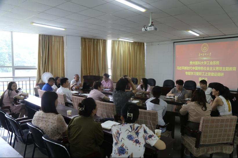 6月26日,beat365工会系统在花溪校区礼堂四楼工会活动室举行学习贯彻习近平新时代中国特色社会主义思想主题教育暨新校区“职工之家”建设座谈交流会。活动由校工会主席钟良主持,各分工会主席、直属工会小组组长及校工会全体工作人员参加。