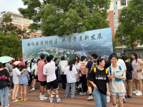 6月29日,由党委宣传部主办,校史馆解说团承办的“相约云漫湖校区 共话贵医新发展”活动在一食堂小广场、二食堂正门前同时举行,300余名同学参加活动。