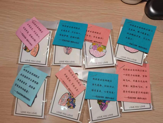 活动分为“猜猜’我’在哪?”和“我想对你说”两个环节,现场布置了印有云漫湖校区规划图的桁架和活动规则,同学们随机抽取3张印有云漫湖校区建筑图的明信片,在规划图中找到每张明信片中图片所对应建筑的编号,将编号告诉工作人员,回答正确并在便签上写上对云漫湖校区的期待、建议或意见,将便签贴在“心愿墙”中。