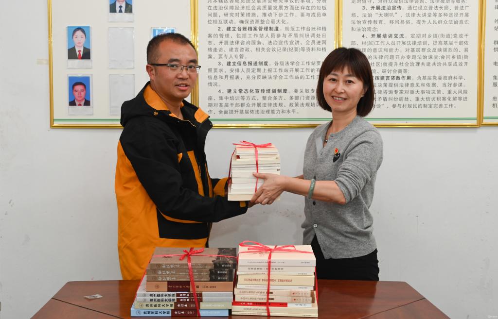陈颖代表宣传与统战党支部向三穗县款场乡龙脚村党总支赠送理论学习书籍、贵医文化读本。