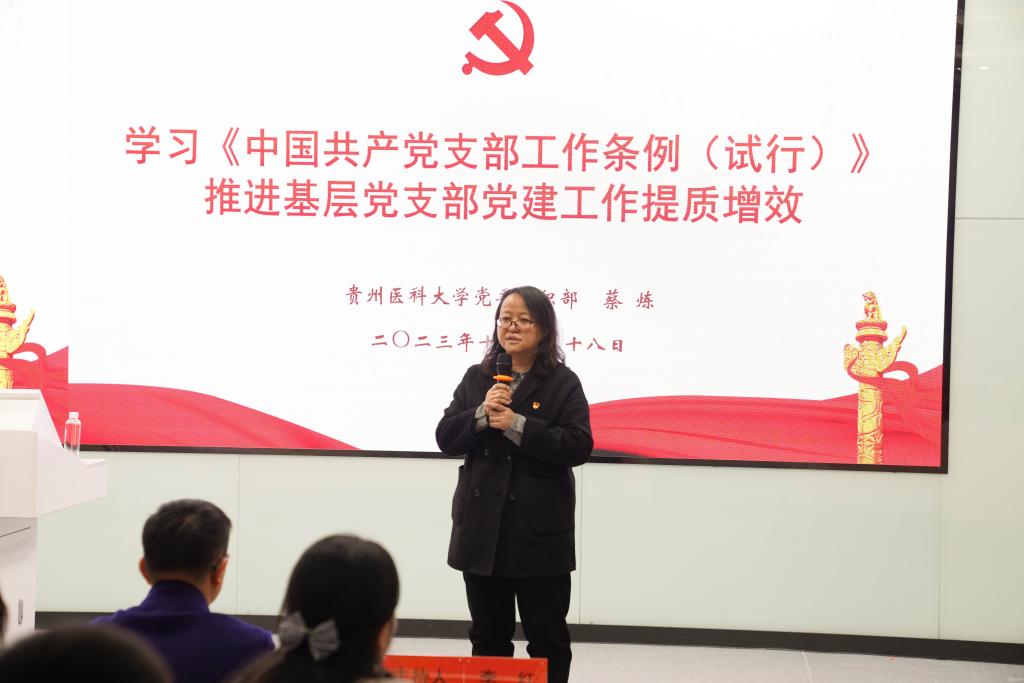 党委组织部副部长蔡炼反馈巡视、党建成效考核和校内督察中发现的支部党建工作存在的问题,解读《中国共产党支部工作条例(试行)》,从基本组织设置规范化、基本队伍建设规范化、基本制度执行规范化、基本任务落实规范化、基本保障配套规范化等方面对支部标准化规范化建设进行解读。