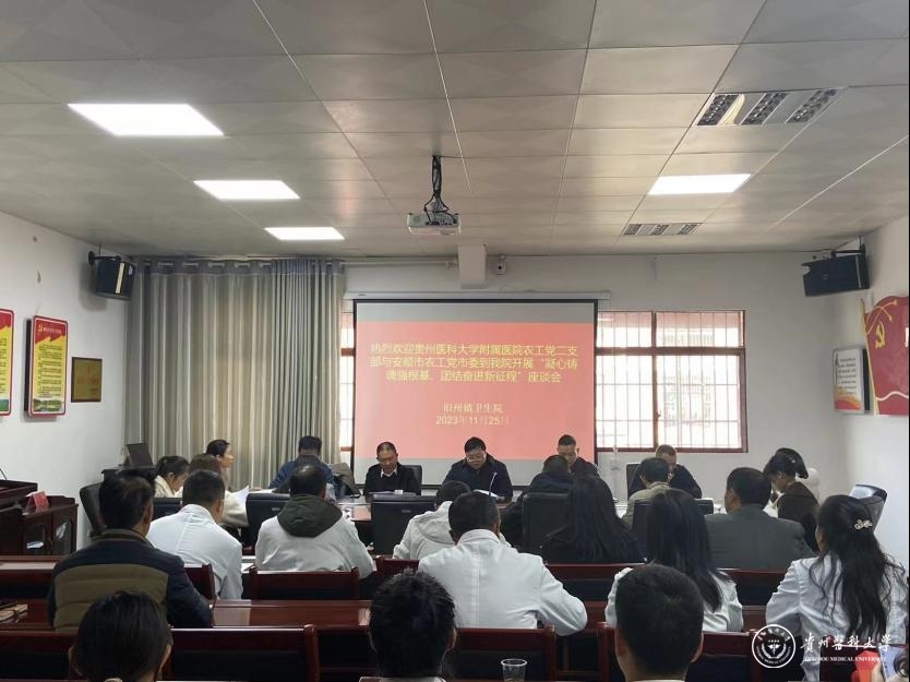 11月27日,农工党贵州省直贵医大总支二支部主委、附院消化内科副主任杨杰博士带队赴安顺开展“凝心铸魂强根基 团结奋进新征程”主题教育。农工党安顺市委会专职副主委袁源,副主委吴玲、周劲峰出席会议。安顺市人民医院、旧州镇卫生院相关领导和医师参加活动。