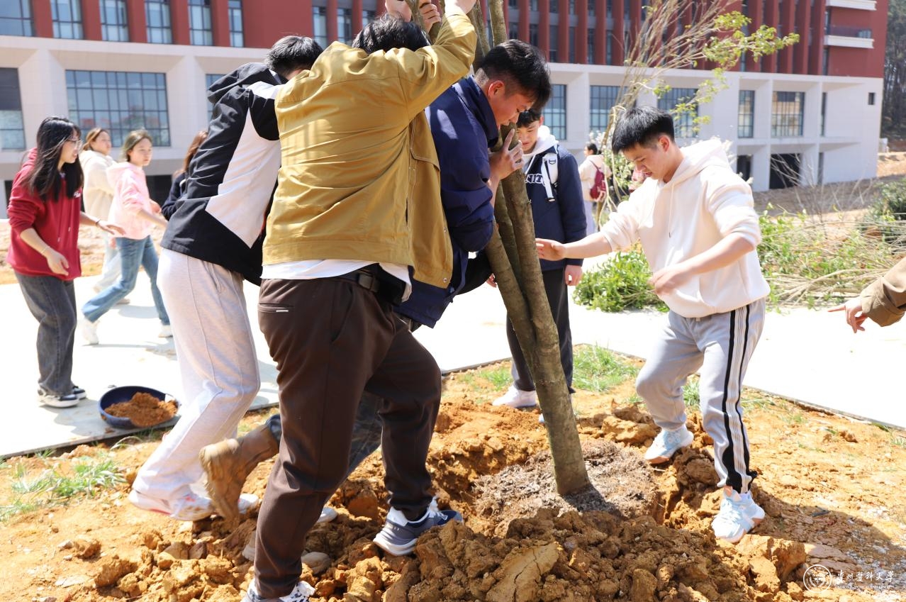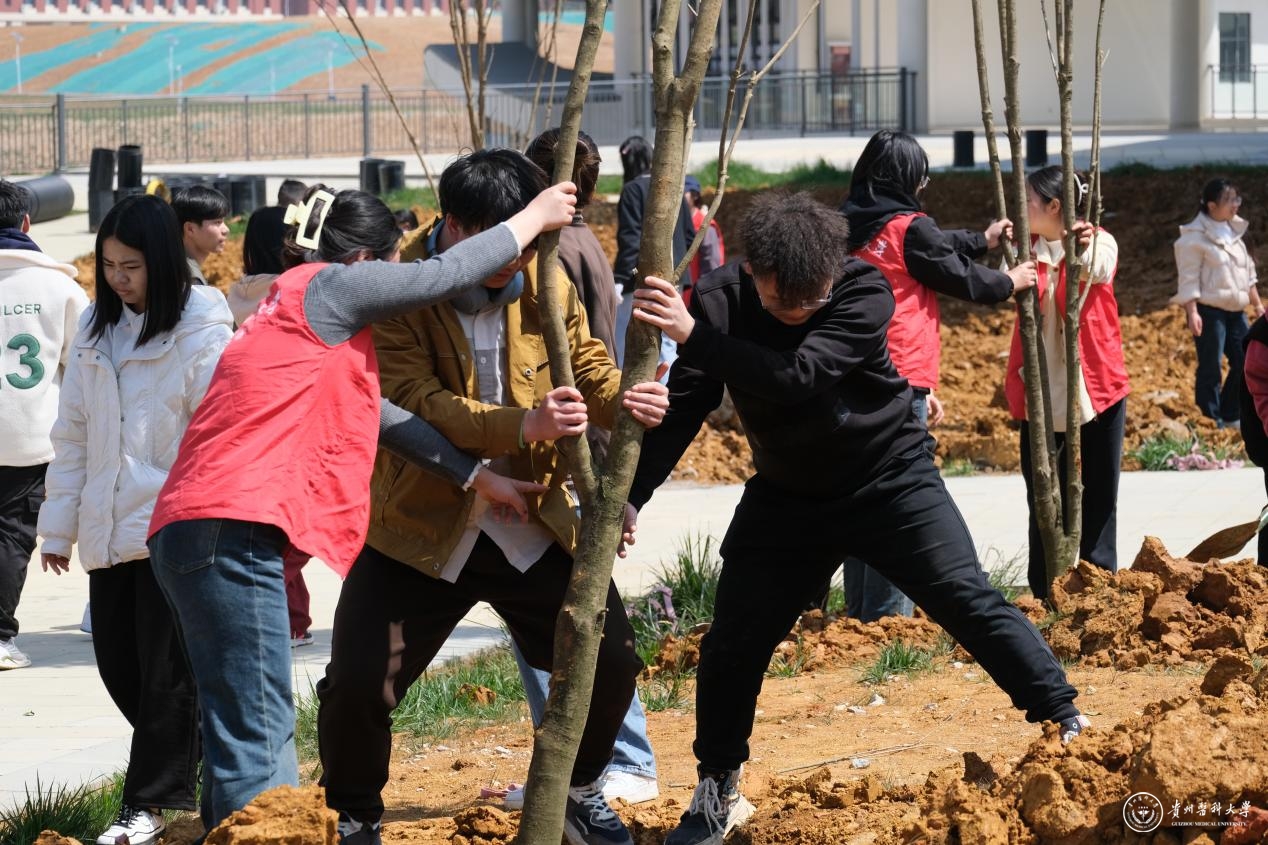 活动现场,师生志愿者们热情高涨,干劲十足,挖坑铲土、扶树正苗、提水浇灌,各个环节衔接有序。