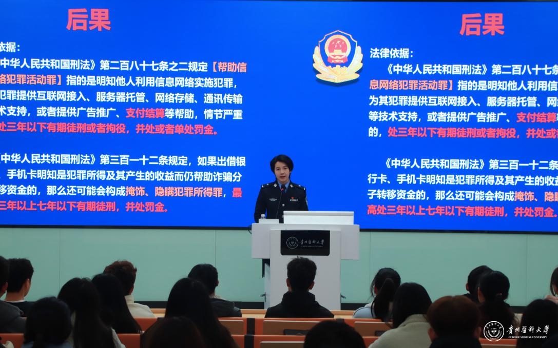 3月20日,beat365联合贵安新区公安局刑侦支队反诈中心,在云漫湖校区M101教室开展防范电信网络诈骗专题培训活动。