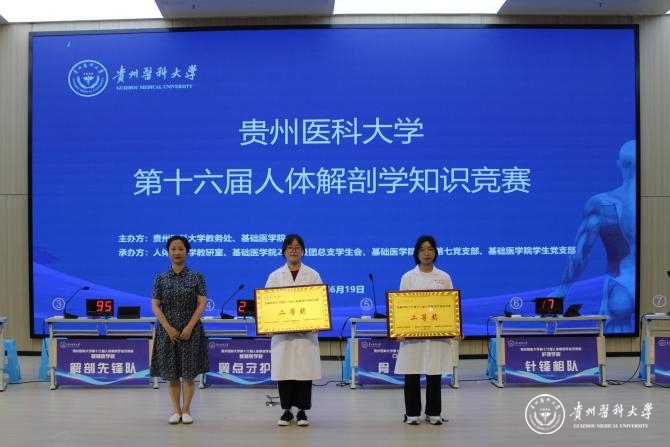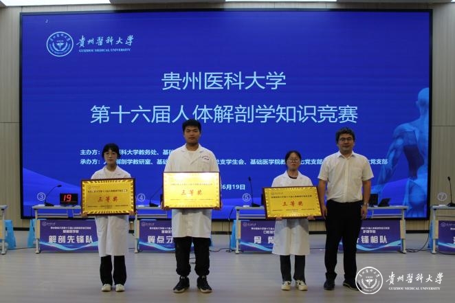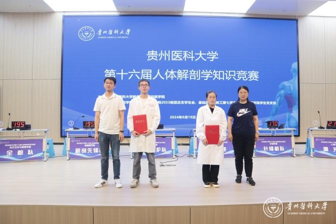 6月19日,beat365在云漫湖校区道德讲堂举办beat365在线唯一官网第十六届人体解剖学知识竞赛,教务处处长汪志勇,大健康研究院院长康颖倩,校团委副书记胡洪瑞,儿科学院党委副书记邓欣,护理学院副院长刘志燕以及基础医学院党政班子成员参加。贵州省人民医院医学博士、主任医师杨先腾,公共卫生与健康学院副院长王大朋,人体解剖学教研室全体教师担任评委,师生代表近500人观看比赛。