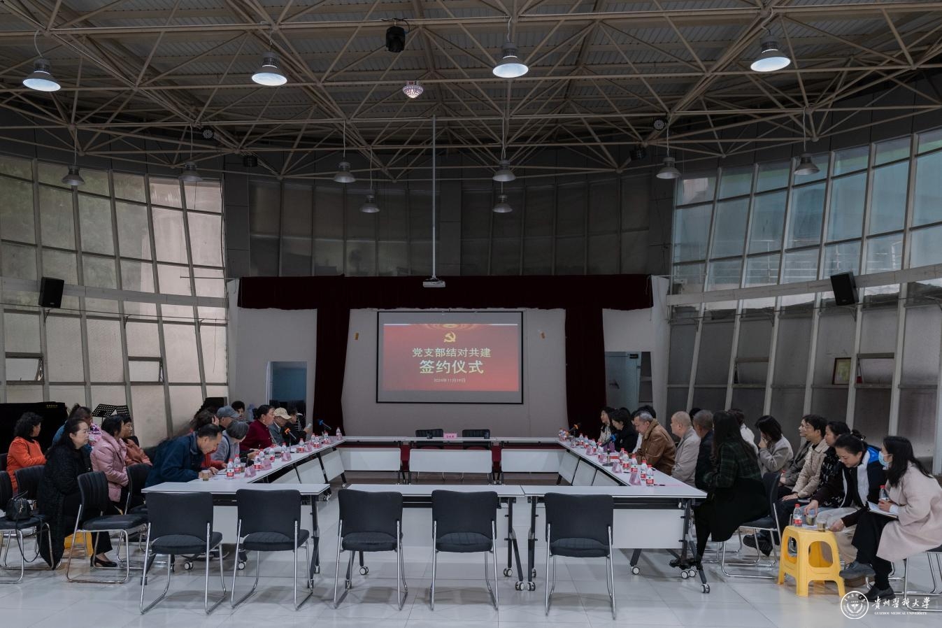 11月19日,离退休工作处各退休党支部与学生党支部结对共建签约仪式在北校区圆厅举行。各退休党支部书记、委员,临床医学院、医学检验学院、医学影像学院、法医学院、麻醉学院、儿科学院党委书记、党委副书记、组织员及结对学生党支部书记参会;离退休工作处全体人员参加。活动由离退休工作处党总支书记、处长张雪晴主持。
