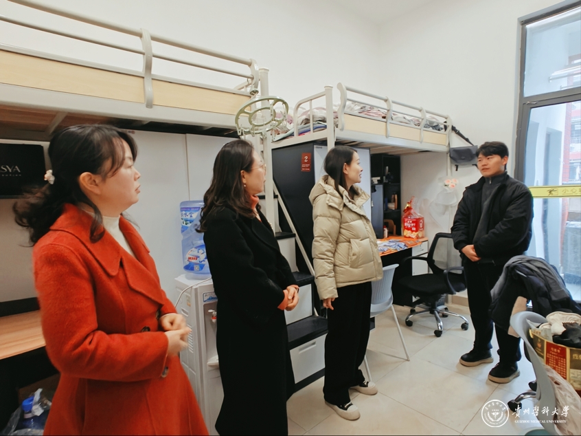 齐晓岚详细询问了研究生寒假期间留校学习、生活及实验目前进展情况,困难学生的实际需求,希望同学们在保证学习、工作顺利进行的同时,注意个人的身体健康和人身安全。她鼓励研究生们保持积极向上的心态,珍惜在校时光,努力学习,不断提升自我。齐晓岚也强调了冬季研究生在寝室、实验室要注意用电安全,要提高安全意识,保证良好的校园安全环境。