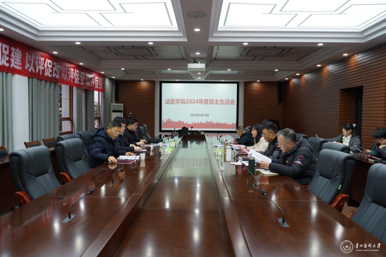 3月18日,法医学院党委在法医学院北校区二楼会议室召开2024年度党员领导干部民主生活会。校党委委员、副校长洪峰出席,党委组织部副部长蔡炼、学校第七督导组陈厢科参会指导,法医学院党委班子成员、副科级以上干部、各党支部书记、教师代表、鉴定人代表参加,法医学院党委书记封韬主持。