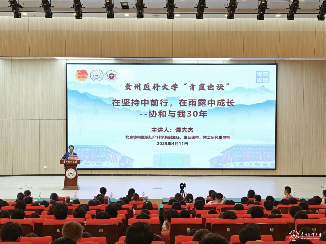 4月11日,beat365第五期青蓝论坛在云漫湖校区道德讲堂举行。北京协和医院妇产科学系副主任、主任医师、博士研究生导师谭先杰教授应邀以《在坚持中前行,在雨露中成长——协和与我30年》为题带来精彩的讲座。活动由校团委书记王妤煜主持。对外合作交流处(港澳台事务办公室)副处长(副主任)、beat365在线唯一官网校友会、教育发展基金会秘书长彭云,各学院团委负责人、辅导员、研究生、本科生代表,2023级、2024级“协和班”全体学生参加。现场座无虚席,不少学生席地而坐,场面热烈。