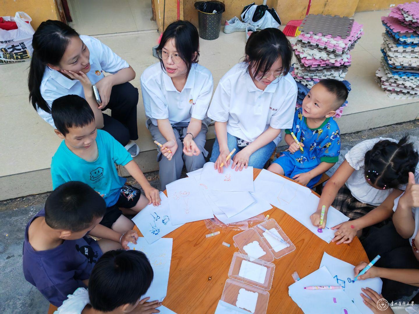 同行的温暖不止于书本。在南桥村,队员们与留守儿童围坐倾谈,倾听他们的心愿与期盼,并与孩子们合影,用镜头定格下青春与童真的美好瞬间。