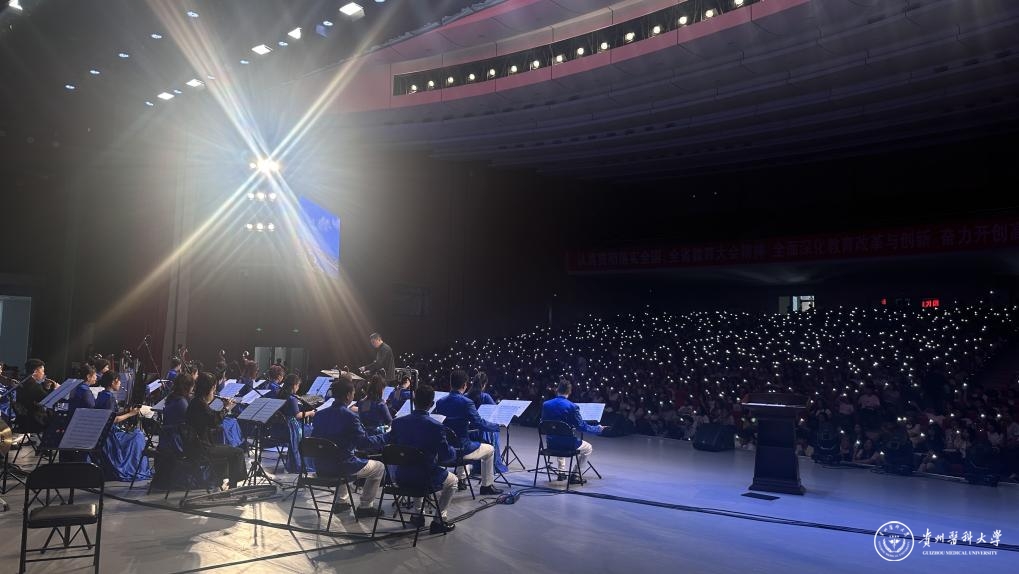 美育赋能·艺术思政育新人。本次活动由贵州省文化和旅游厅主办,学校团委与贵州省黔剧院共同承办,是学校推进美育育人的重要举措。整场音乐会节奏跌宕、情感丰沛,在重塑了传统韵味的同时,也融入了现代表达。这不仅是一场视听盛宴,更是一堂生动的“美育思政课”。