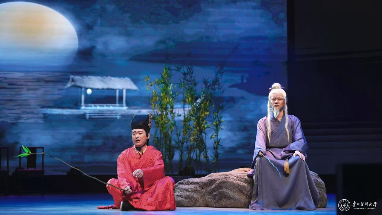 这不仅是一场艺术演出,更是一堂生动的“美育思政课”。 王阳明“知行合一”“致良知”“心学”的思想,与医学教育中强调的“理论与实践相结合”、医者“精诚合一”的职业精神高度契合。活动现场气氛热烈,掌声不断。演出在贵医青年中引发强烈共鸣,一位同学在观后激动地表示:“现场观看给人一种立体的震撼。当王阳明说出‘此心光明’时,我深受触动。这让我对‘致良知’和‘知行合一’有了更深刻的理解,也启示我未来在从医道路上,要始终坚守良知,将所学所知付诸实践。”
