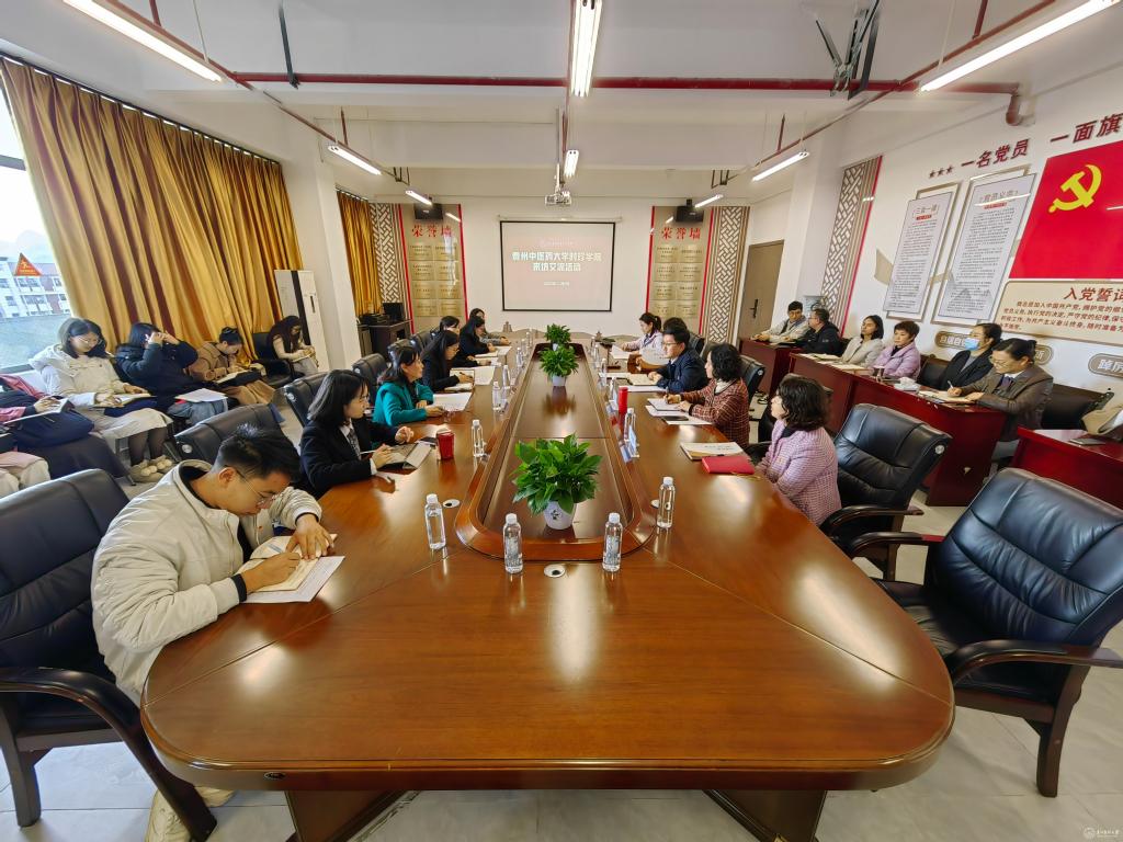 11月6日,贵州中医药大学时珍学院党委组织部负责人车鑫、护理学部院长李丽一行到护理学院开展交流。学校党委组织部副部长蔡炼,护理学院党政领导班子、科级干部、党支部书记和教职工代表参加。